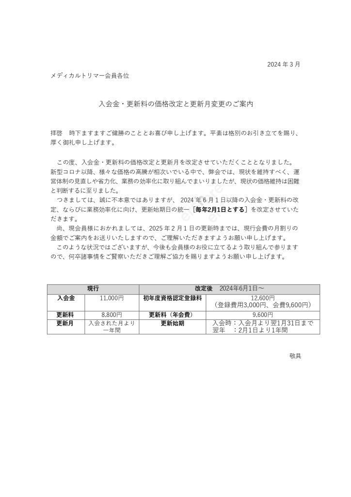 【お知らせ】価格改定のご案内