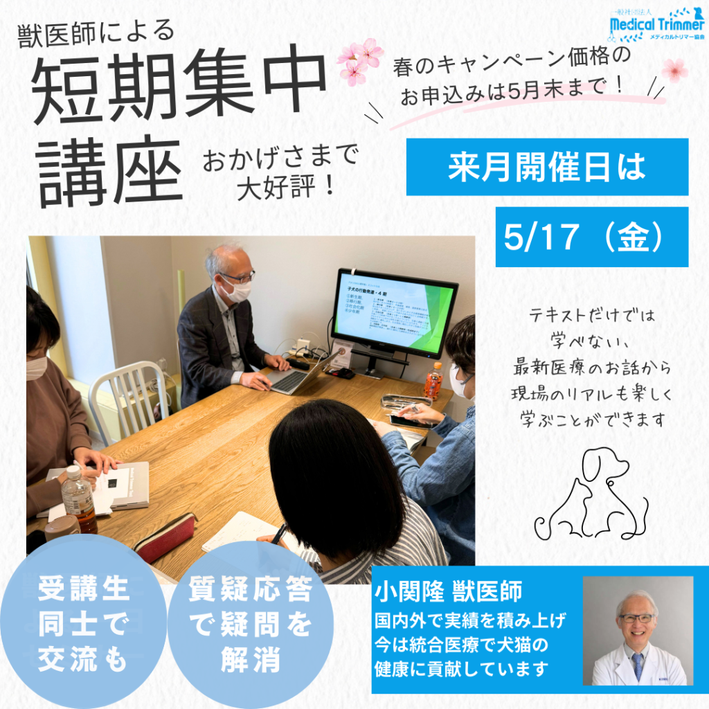 【🐩短期集中講座 来月は5/17(金)🐈】